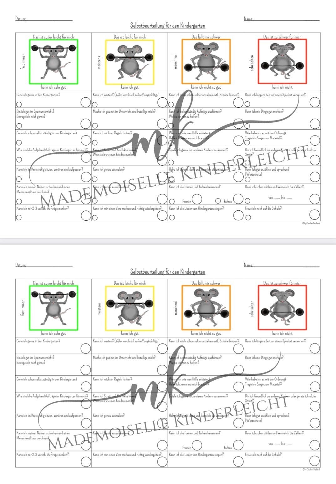 Selbstbeurteilung für den Kindergarten