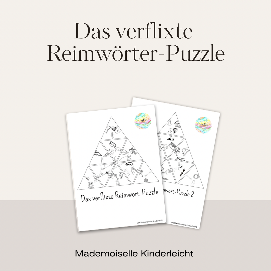 Bei diesen 2 Puzzles müssen die Kinder die passenden Reimwörter finden und diese zusammenfügen, bis ein Dreieck entsteht.